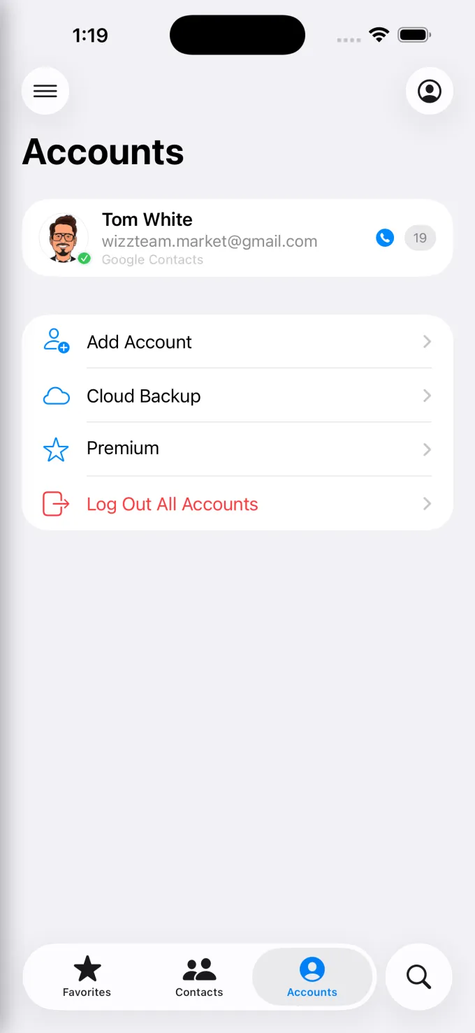 Yes! Our built-in "Duplicate Cleaner" scans your accounts for matching names, emails, and phone numbers, allowing you to merge them into a single, clean contact entry with just a few taps.